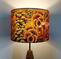 Drum lampshade featuring 'Mushrooms' design by Lily Greenwood. Featuring rich colours, a beautiful finishing touch to any room. All Lily's lampshade fabric designs are derived from her original paintings, and Lily constructs the lampshades by hand in her garden studio in the Cumbrian countryside.