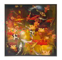 Original Canvas - Koi with Lilies and Maple - 100cm x 100cm
