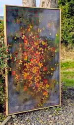 The upward flow of butterflies embodies energy, vitality, positivity, and joy. The butterflies stand out vibrantly against an earthy background inspired by moorland colours. This canvas is a celebration of colour, with feelings of hope, upward motion, release, and strength in numbers.