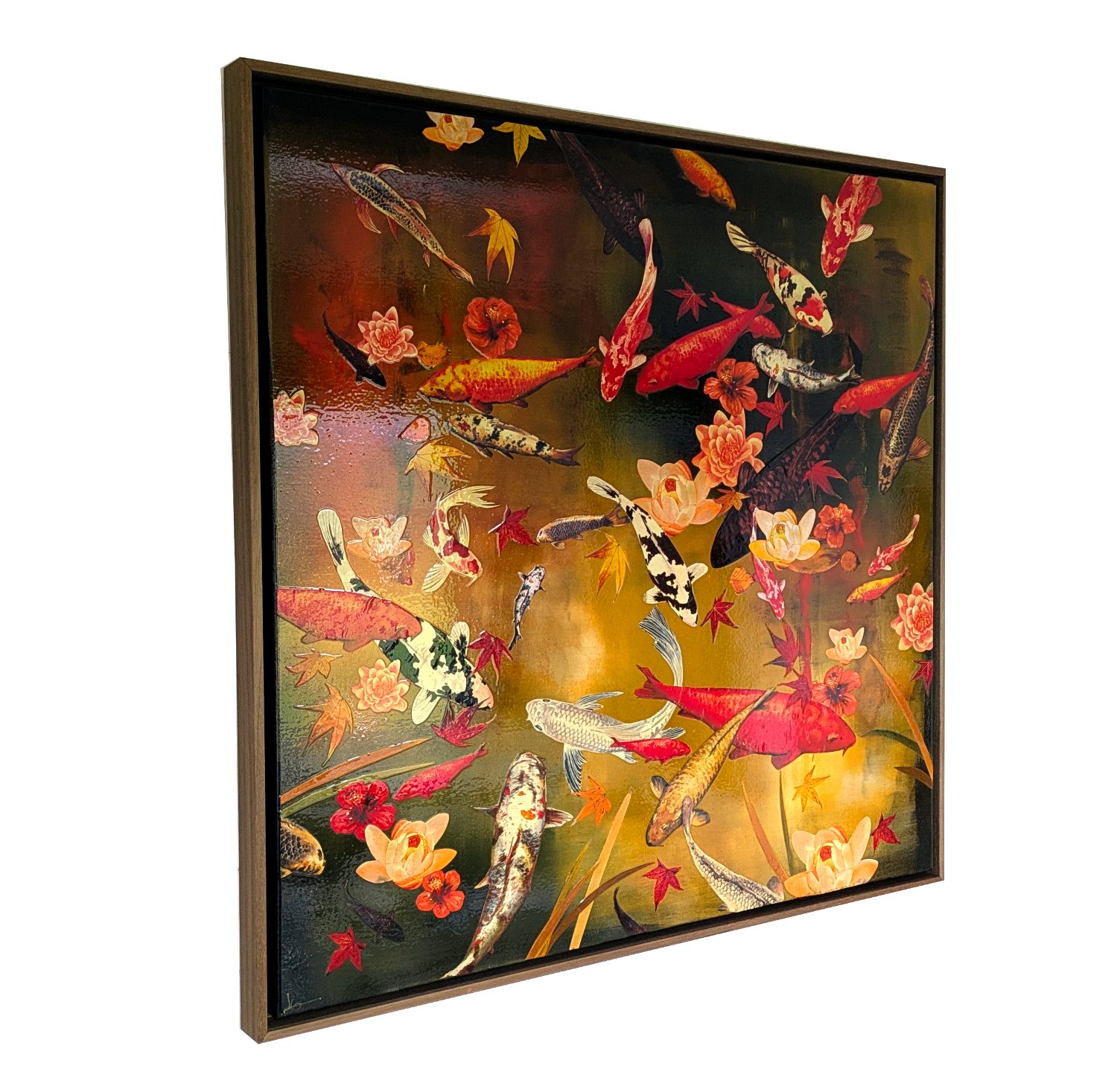 Original Canvas - Koi with Lilies and Maple - 100cm x 100cm