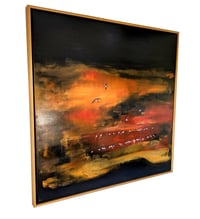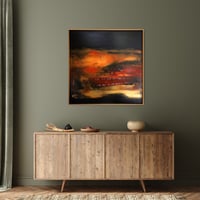The canvas is stretched on a deep edge wooden frame with painted sides. Included is a made to measure box/tray frame, which is easy to remove if preferred. The frame is finished with Littlefair's water based non-toxic water stain in Light Oak. Ready to hang.